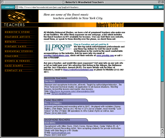 Roberto's Woodwind: Roberto's Woodwind features a specialized shop that combines old fashioned service with a complete, up-to-date selection of products.